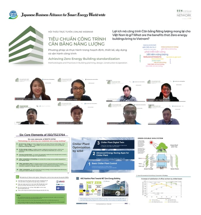 2022年11月9日、世界省エネルギー等ビジネス推進協議会ZEBソリューションWGは、VSSE(Vietnam Sustainability Social Enterprise)と協力して、オンラインにてベトナムの民間事業者を対象として「Realizing zero energy building standardization」セミナーをZoomプラットフォーム上で開催し、120名以上の参加者が集まり、成功裏に終了致しました。
